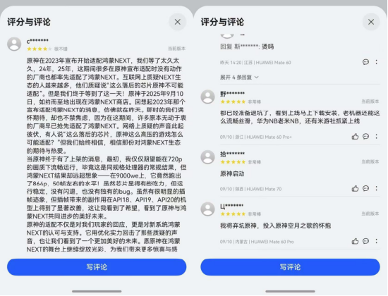 数据显示,鸿蒙版《原神》上线首日,下载量即超10万,超3000用户给出了4.9的高分:“终于来了”“比想象中更流畅”,不少玩家如此评价道。这意味着鸿蒙系统经受了3A重载游戏的考验,系统能力得到玩家肯定。