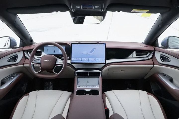 进入车内,海豹07 DM-i的座舱氛围会让人眼前一亮。比亚迪在这款车上尝试营造一种既符合中型轿车定位的豪华感,又能体现新能源车的科技感。整体风格简约而富有质感,用料与做工在同级别车型中堪称上乘。中控部分最显眼的当属15.6英寸悬浮式可旋转触控屏,搭载新的DiLink 100智能网联系统,界面清晰,反应灵敏。屏幕可横竖切换,适应导航、观影、办公等不同场景需求,几乎相当于一台平板电脑被集成到车内。配合10.25英寸液晶仪表盘,信息显示全面且直观。车辆还配备HUD抬头显示系统,可将车速、导航、驾驶辅助提示投射到挡风玻璃上,让驾驶者无需低头即可获取关键信息,提升安全性与便利性。