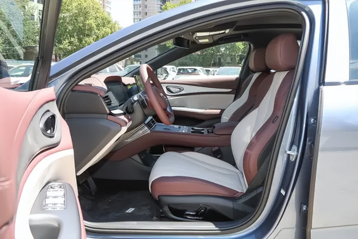 内饰用料方面,大面积采用软性材质与皮革包裹,配合镀铬饰条和木纹装饰,质感兼顾豪华与现代。氛围灯光系统支持多色调节,夜晚点亮时座舱氛围温馨而富有层次感。中控区域因采用电子怀挡而显得更为简洁,同时释放出更多储物空间。