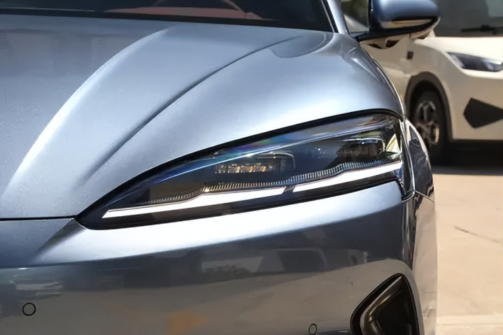 前脸采用了新能源车型常见的封闭式格栅设计,摒弃了传统燃油车大面积进气口的复杂布局,显得简洁而富有张力。中央饰条以横向镀铬点缀,与狭长锐利的大灯相连,横向拉伸视觉宽度,营造出低趴、宽体的运动感。三合一集成式日间行车灯不仅造型前卫,夜间点亮后更具辨识度,犹如海洋中跃动的浪花,为整车注入了灵动气息。引擎盖上微微隆起的筋线,赋予车头一种力量感,而两侧灯组内的点阵式光源则突显科技氛围。整体设计兼顾空气动力学与美观,风阻系数得以进一步优化,使得车辆在高速巡航时更为稳定。